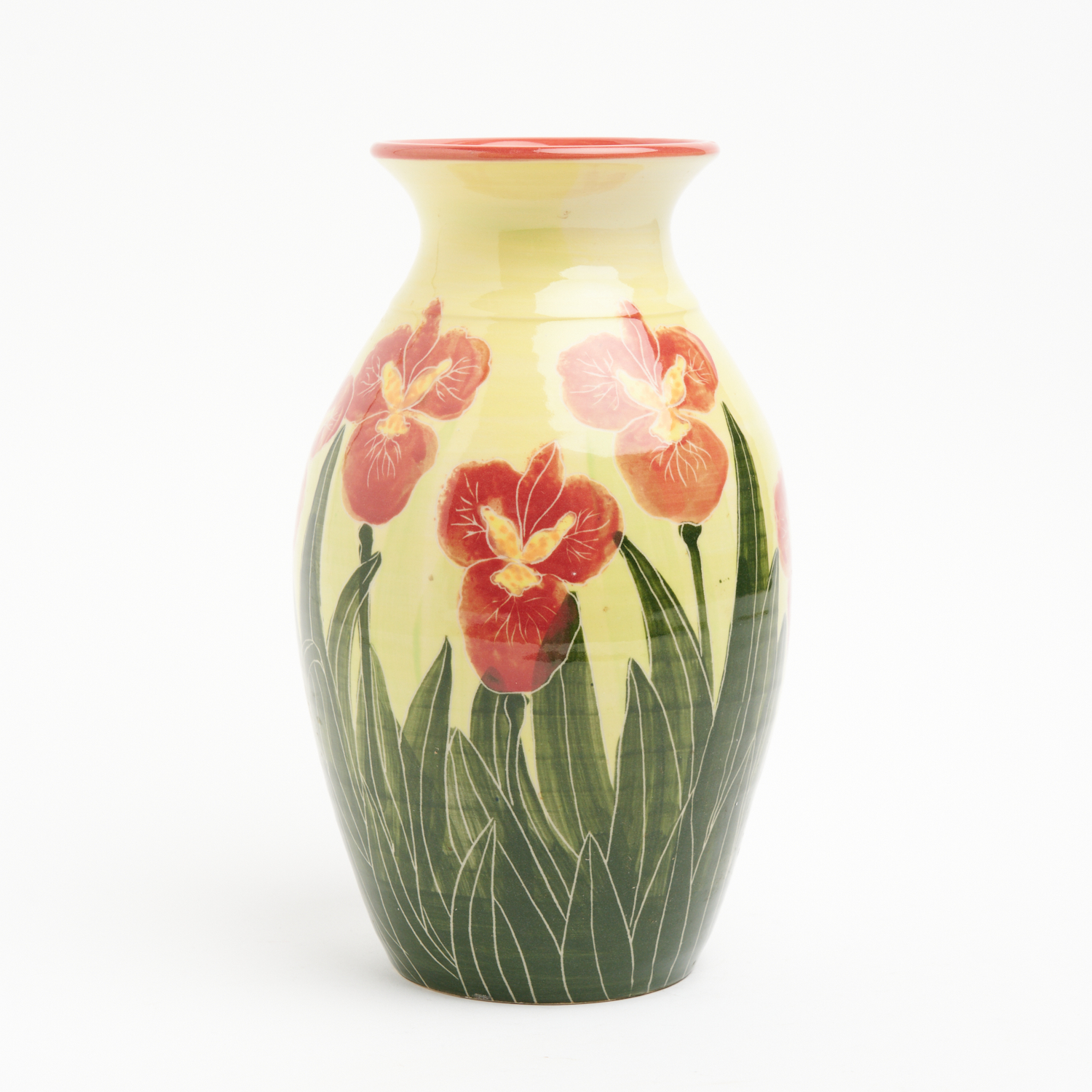 A BRUCE HEGGIE POTTERY VASE DECORATED WITH FLOWERS, STAMPED TO BASE H.30CM