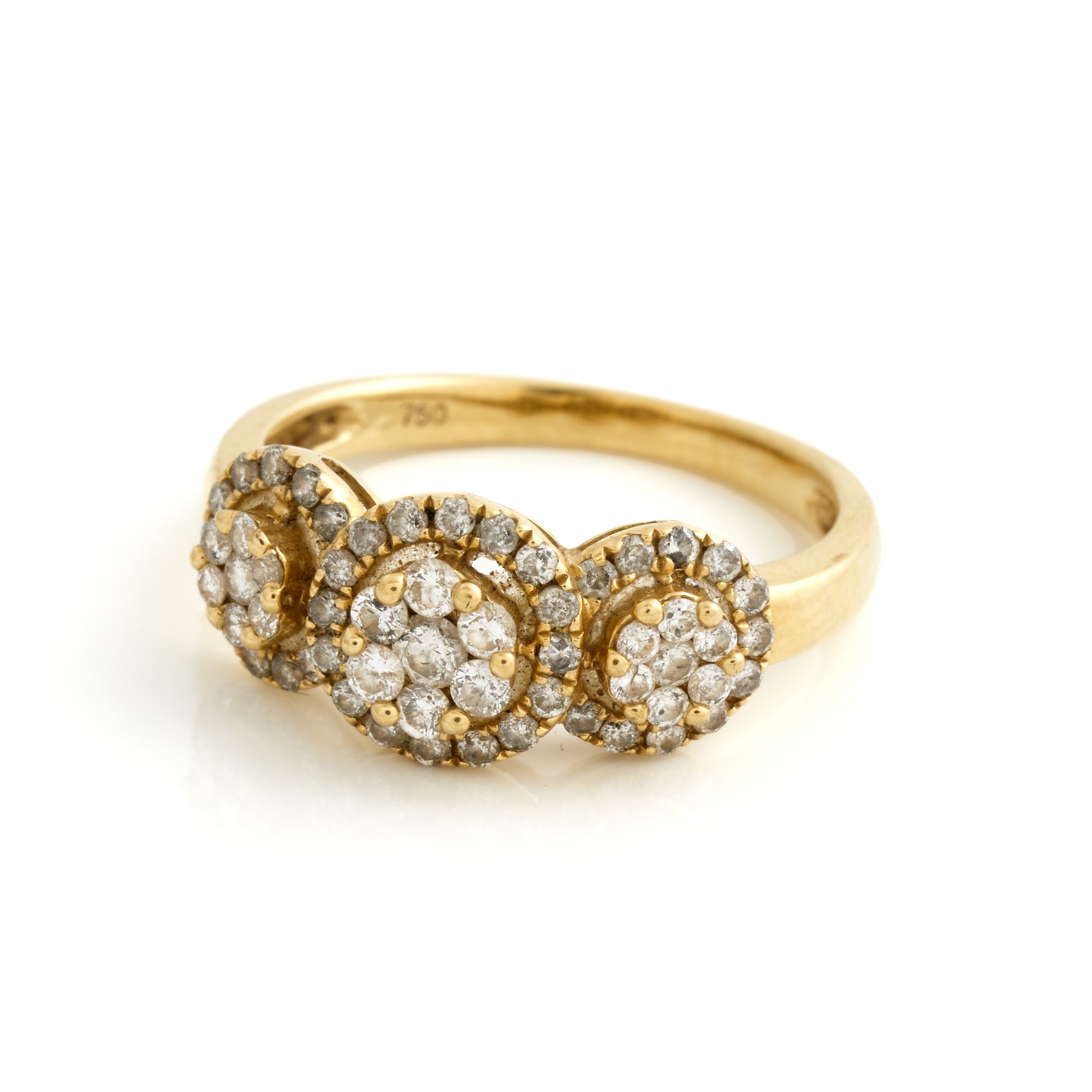 A DIAMOND CLUSTER RING IN 18CT GOLD, SIZE M, 2.80GMS