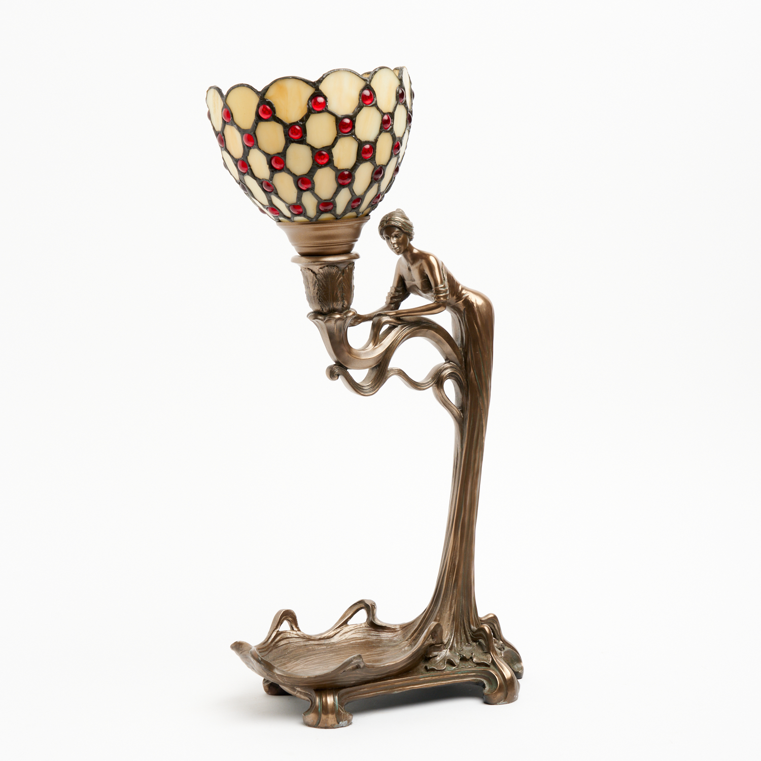 AN ART NOUVEAU STYLE FIGURAL LAMP (A/F NOT WIRED) H.49CM