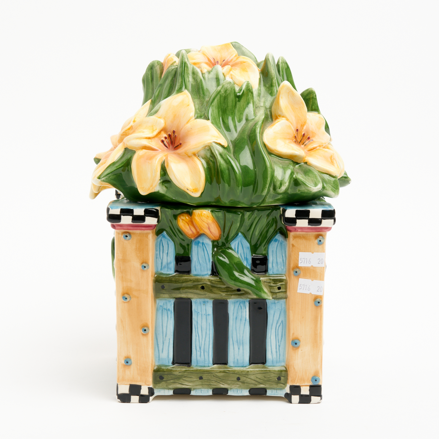A DEBBIE MUMM SAKURA HAND-PAINTED LIDDED JAR H.43CM
