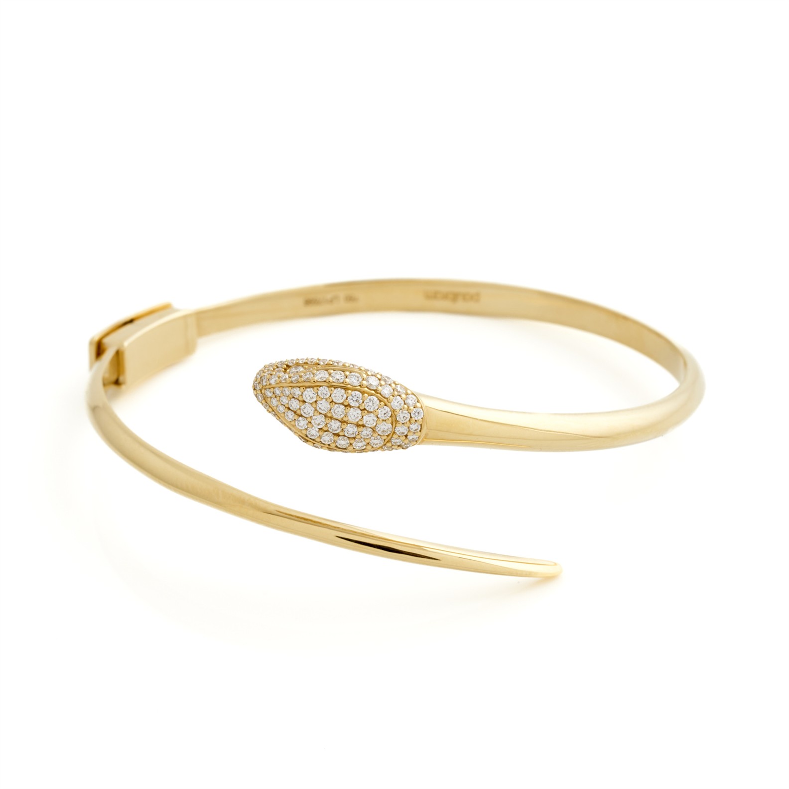 A PAVÉ SET DIAMOND SNAKE MOTIF BANGLE IN 18CT GOLD, THE DIAMONDS TOTALLING 0.68CT, INNER DIAMETER 55MM, 21.91GMS