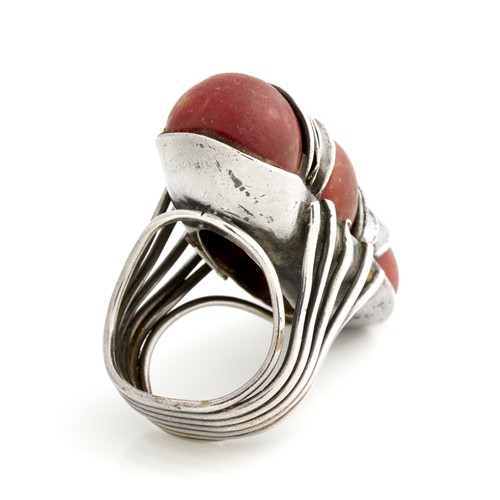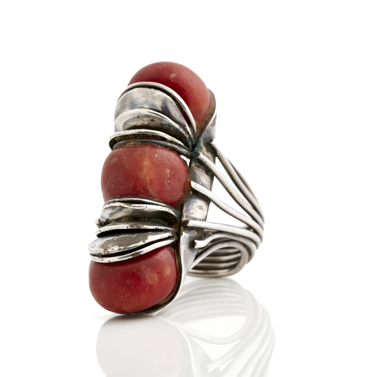 A CORAL RING IN SILVER, SIZE K, 23.6GMS