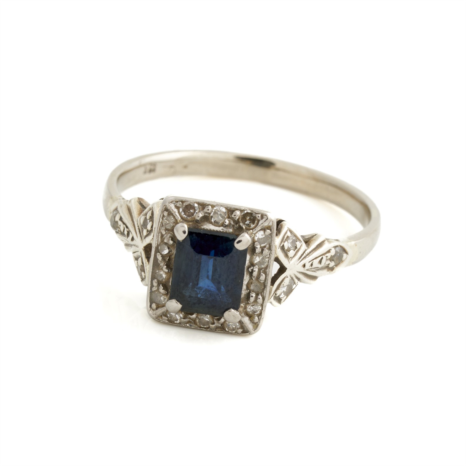 A SAPPHIRE AND DIAMOND RING IN 18CT WHITE GOLD, SIZE Q 1/2, 3.5GMS