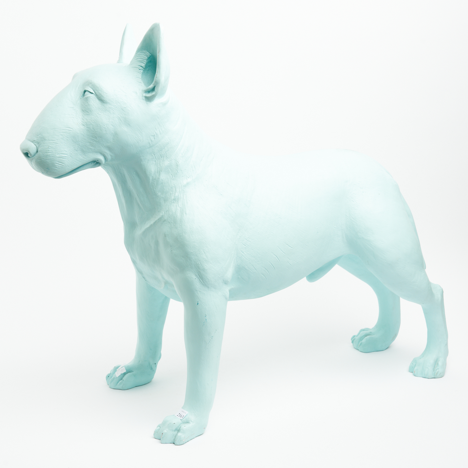 AN EX DAVID JONES LIFE SIZE FIBREGLASS DISPLAY MODEL OF A DOG H.90CM