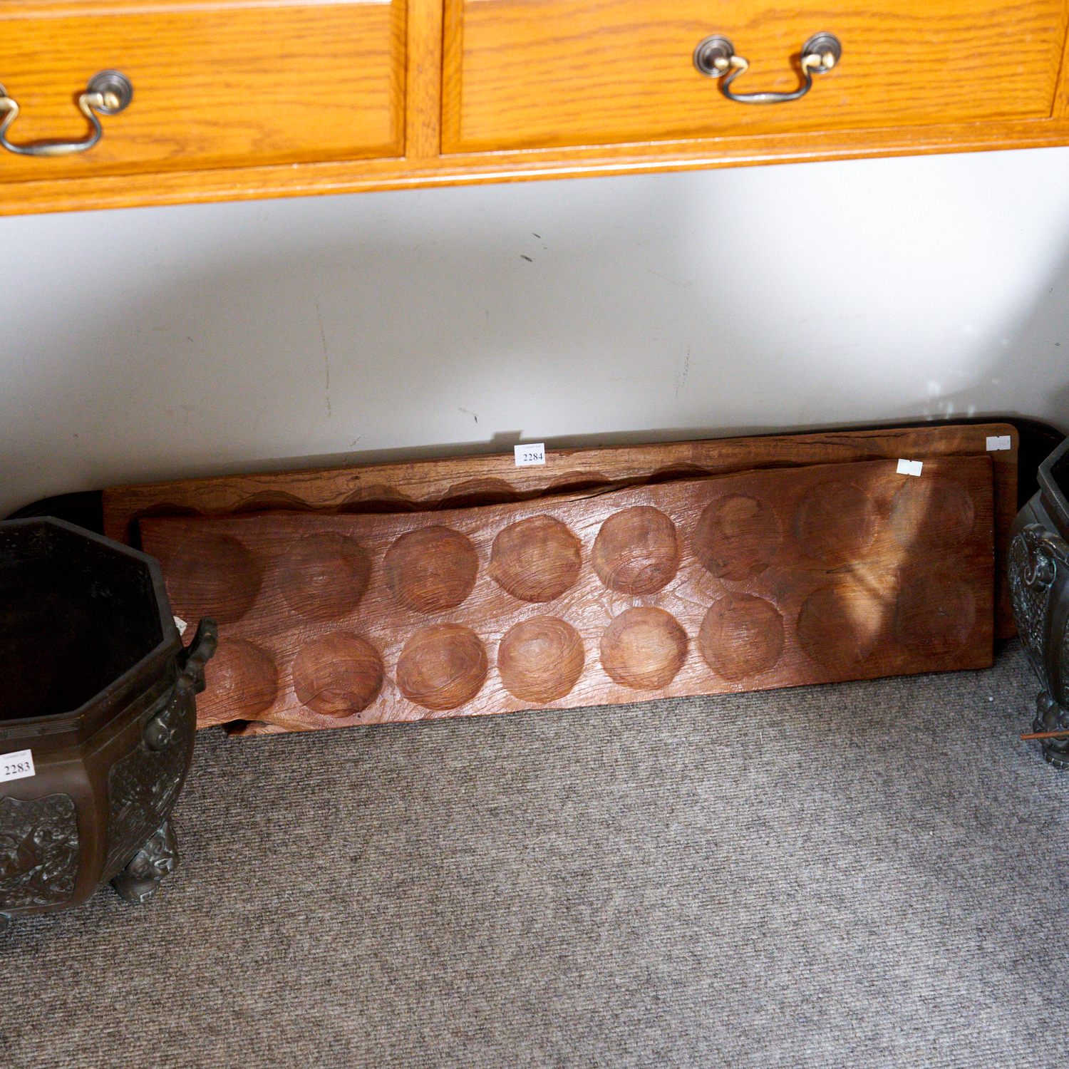 THREE CARVED MANCALA BOARDS L.95CM (LONGEST)