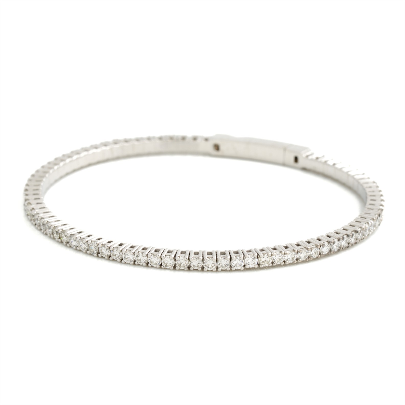 A DIAMOND BANGLE IN 9CT WHITE GOLD, THE DIAMONDS TOTALLING 3.15CT, G COLOUR, VS CLARITY, INNER DIAMETER 55MM, 7.71GMS, ACCOMPANIED BY A VALUATION