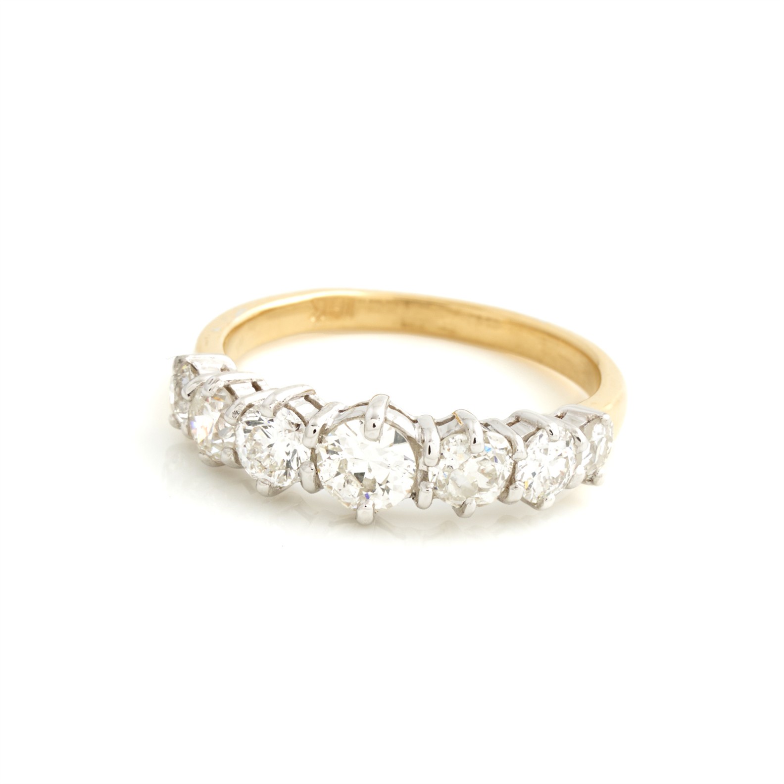 AN OLD EUROPEAN CUT DIAMOND RING IN 18CT TWO TONE GOLD, THE DIAMONDS TOTALLING 1.60CT, F COLOUR, SI CLARITY, SIZE M 1/2, 2.90GMS, ACCOMPANIED BY A VALUATION
