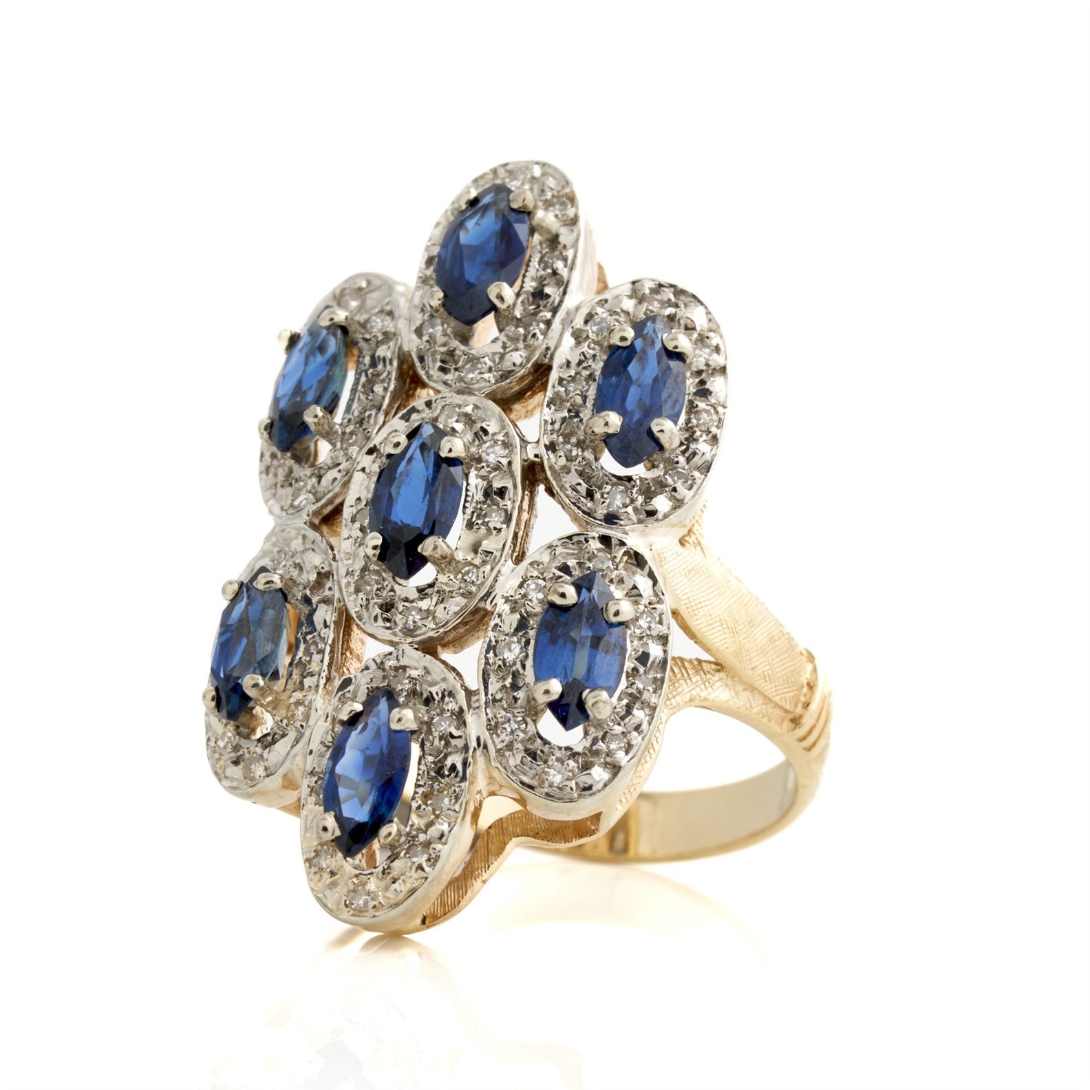 A SAPPHIRE AND DIAMOND RING IN 14CT TWO-TONE GOLD, SIZE P, 9.95GMS