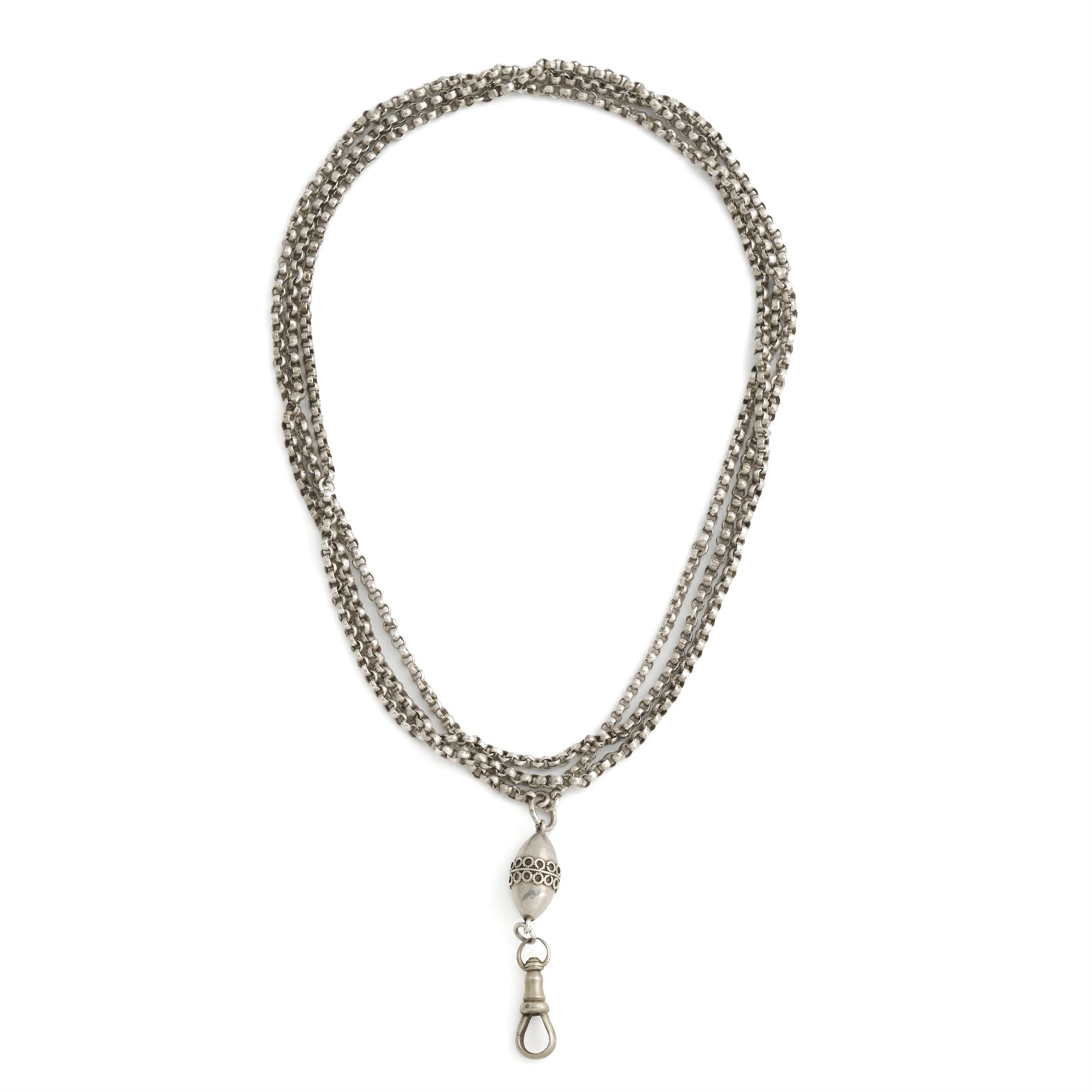 A GUARD CHAIN IN SILVER, LENGTH 1160MM