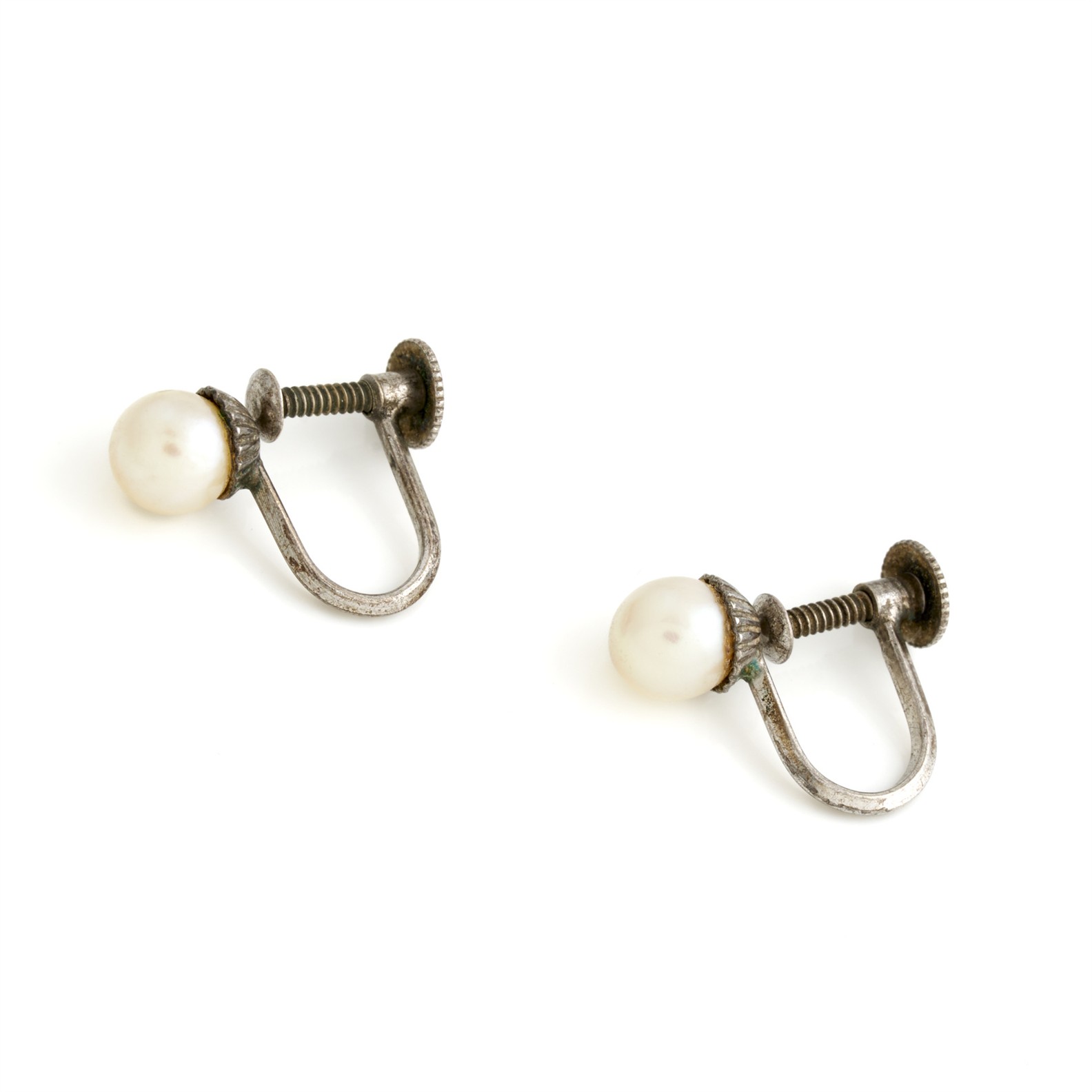 A PAIR OF VINTAGE PEARL EARRINGS IN STERLING SILVER, TO SCREWBACK FITTINGS