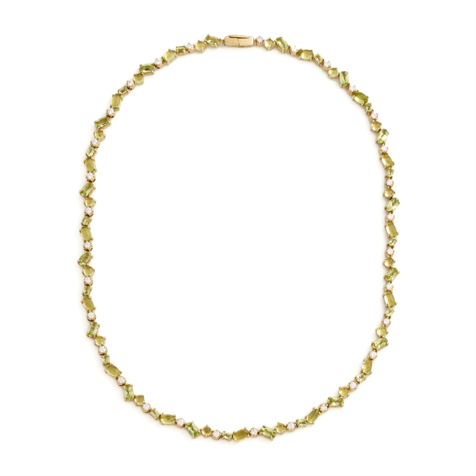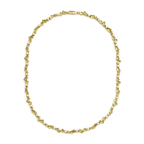 SARAH & SEBASTIAN, A 'SAND' PERIDOT AND DIAMOND TENNIS NECKLACE IN 10CT GOLD, LENGTH 360MM, TOTAL WEIGHT 19.45GMS