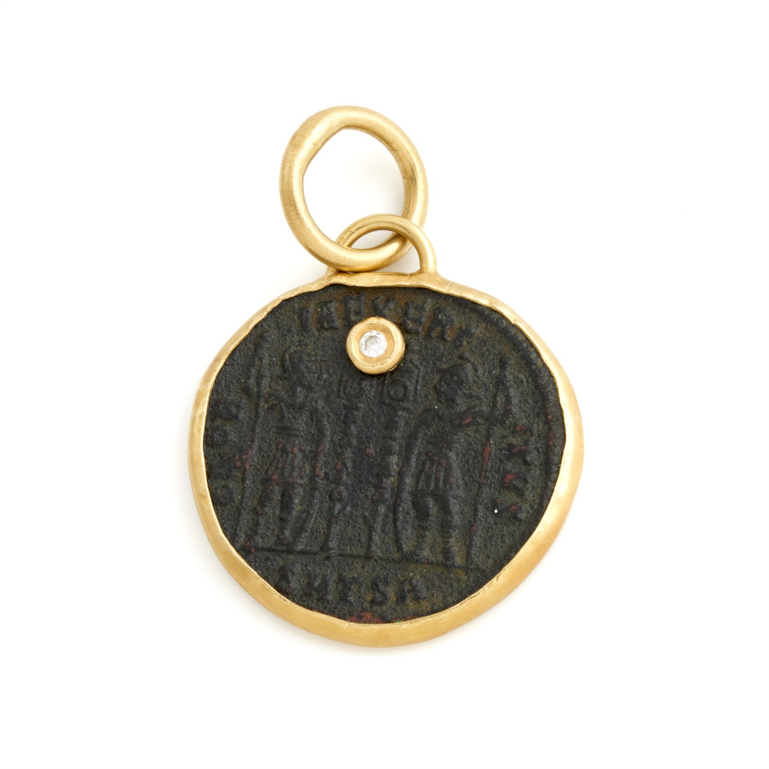 A BRONZE COIN PENDANT IN 18CT GOLD, DIAMETER 19MM, 3.72GMS