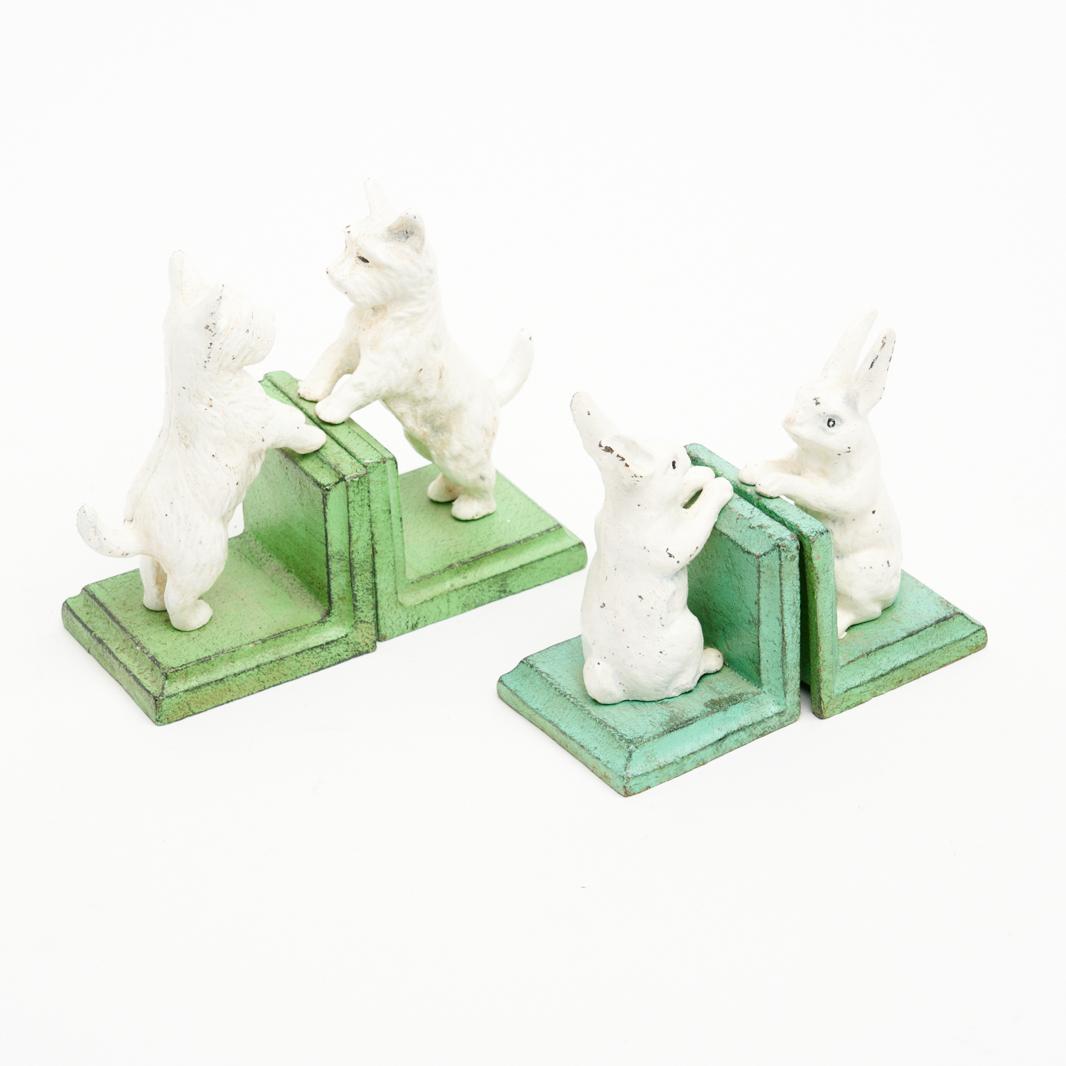 A PAIR OF CAST IRON BUNNY AND DOG BOOKENDS H.15CM