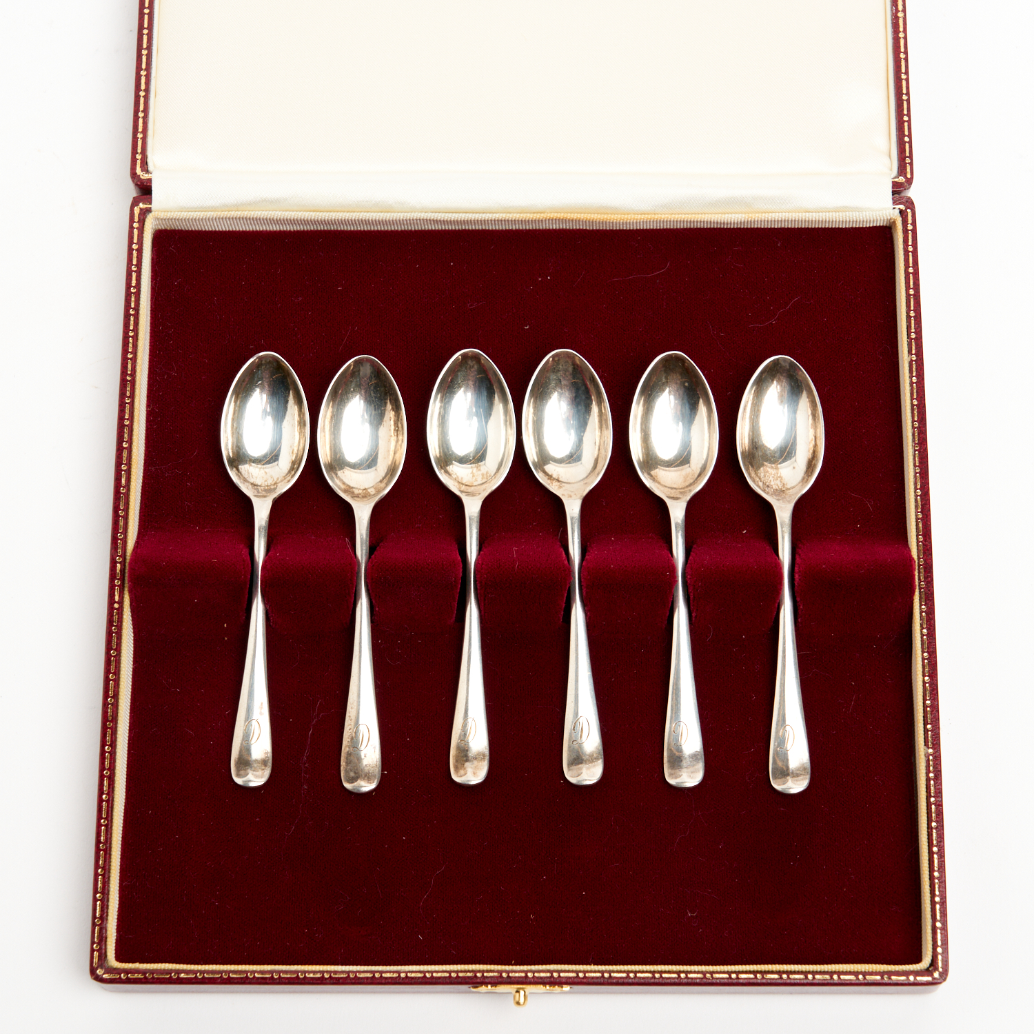 A BOXED SET OF STERLING SILVER TEASPOONS, WALKER AND HALL 1929 50G L.9.5CM