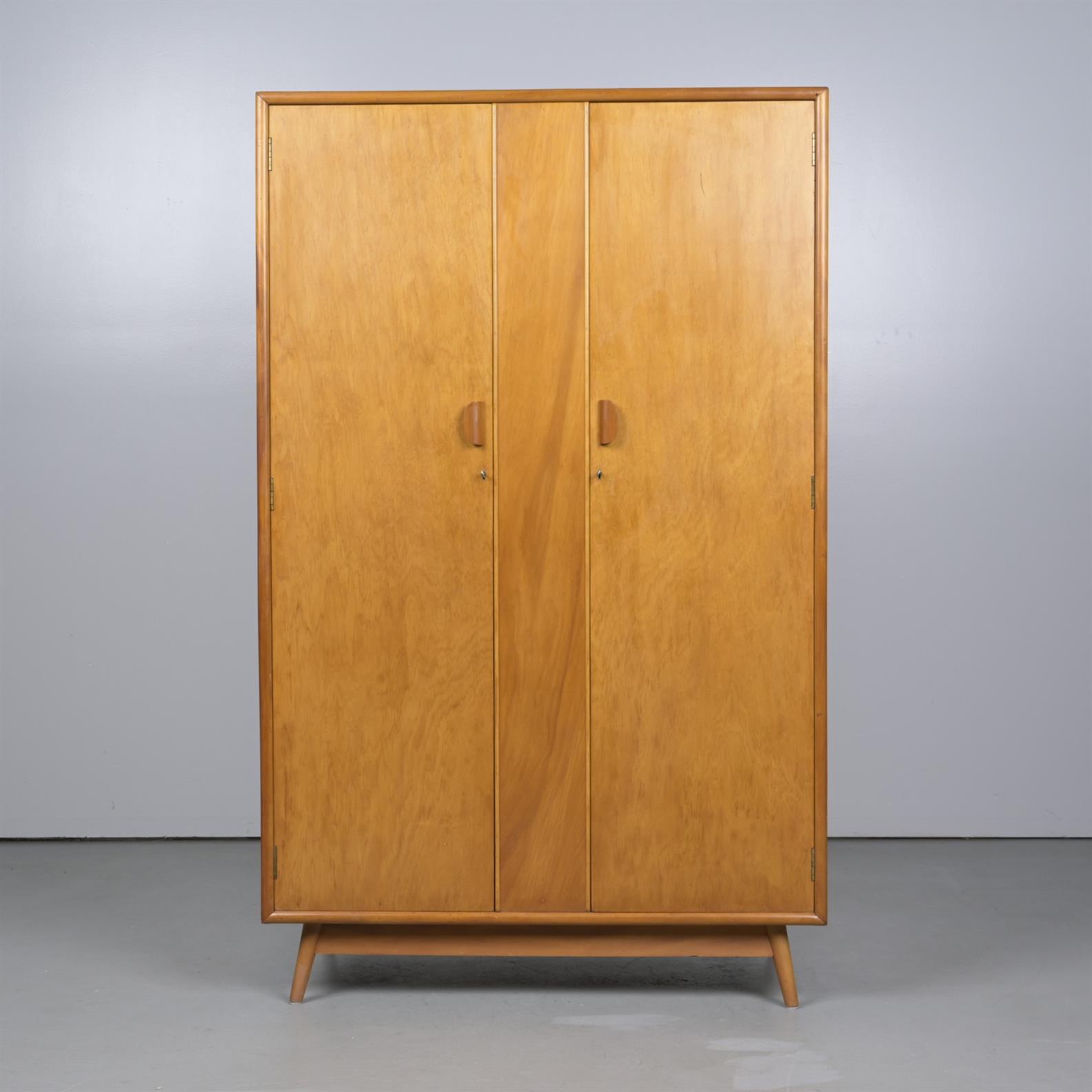 A MID-20th CENTURY BIRCH WARDROBE (185H X 114W X 54D CM)(THIS ITEM MUST BE REMOVED BY THE CUSTOMER OR CARRIERS AT THE CUSTOMER'S EXPENSE. LEONARD JOEL STAFF CANNOT ASSIST CARRYING THIS ITEM)