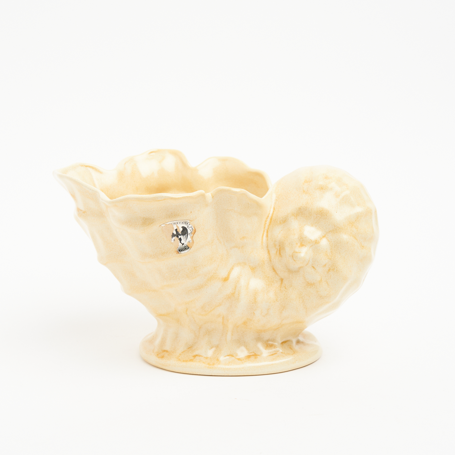 A LARGE AUSTRALIAN POTTERY NAUTILUS FORM SHELL VASE BY GREENWAY L.26CM