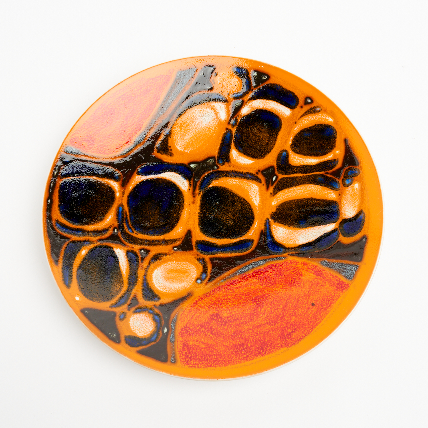 A LARGE POOLE POTTERY ORANGE GLAZED CHARGER DIA.36CM