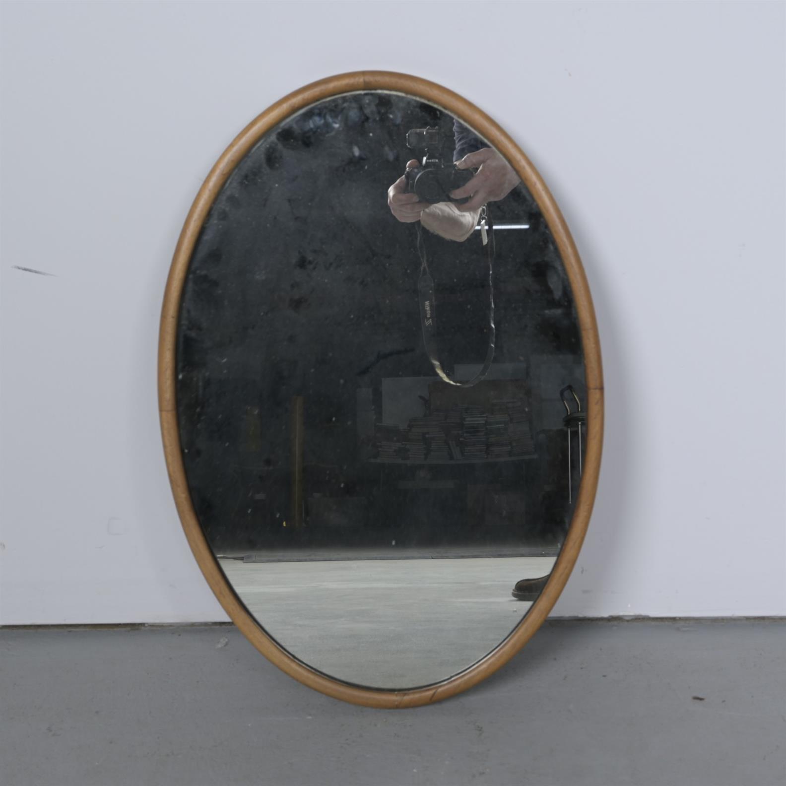 A HARDWOOD OVAL MIRROR (66H X 46W CM)