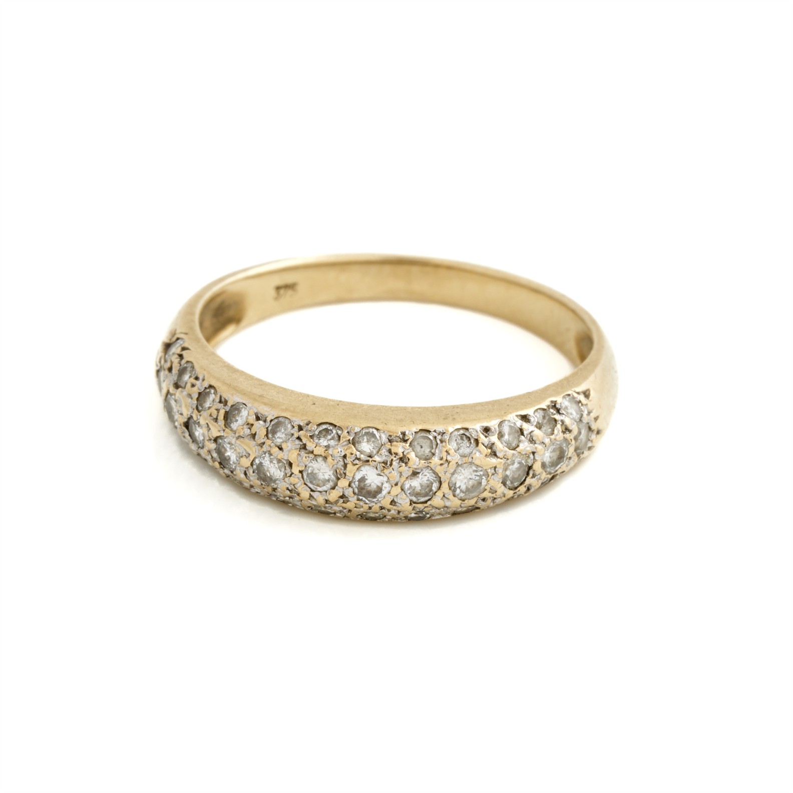A PAVÈ DIAMOND BAND IN 9CT GOLD, SIZE M 1/2, 3.01GMS