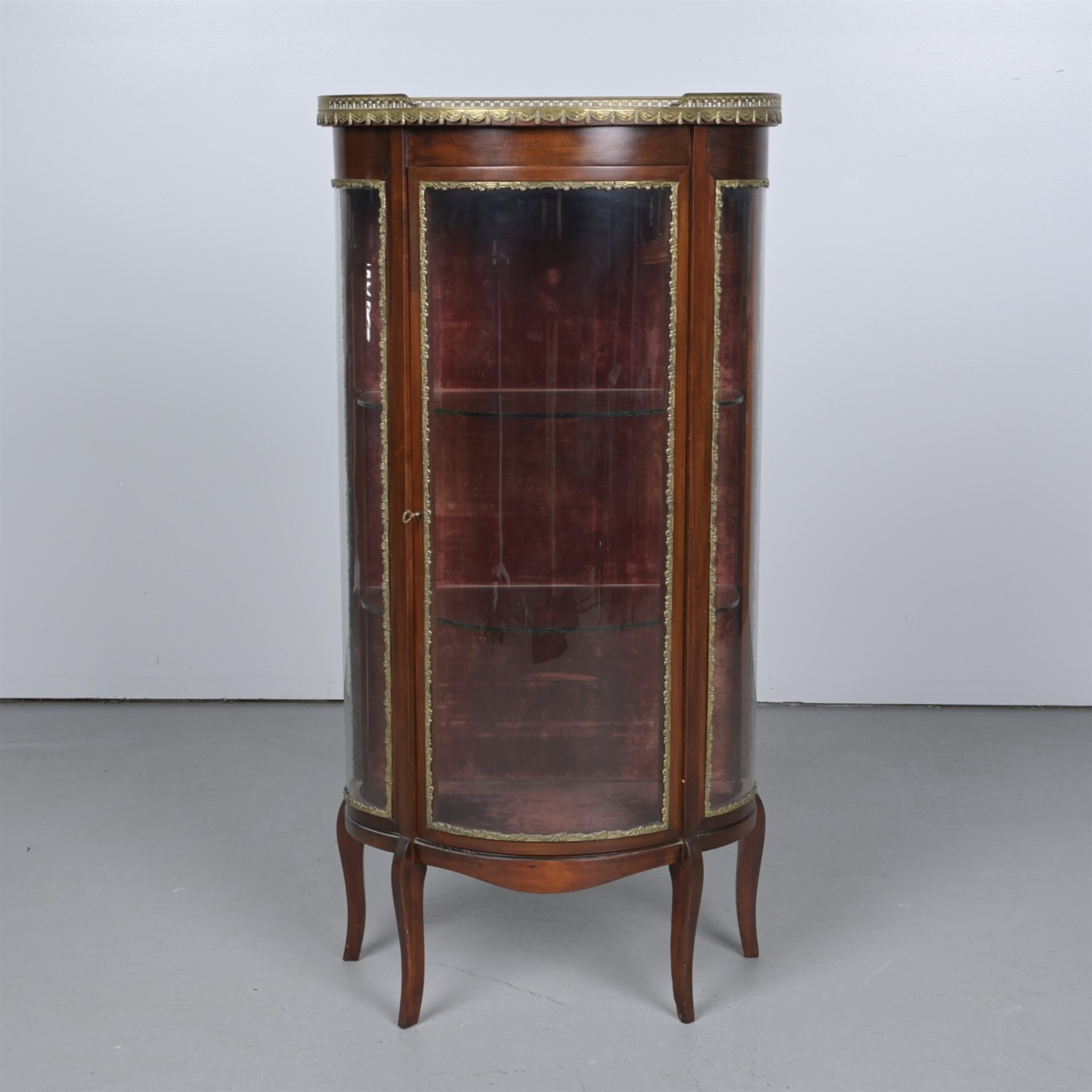 AN EARLY 20th CENTURY MARBLE-TOPPED AND GILT METAL-MOUNTED VITRINE IN LATE LOUIS XV MANNER (139H X 70W X 37D CM)(THIS ITEM MUST BE REMOVED BY THE CUSTOMER OR CARRIERS AT THE CUSTOMER'S EXPENSE. LEONARD JOEL STAFF CANNOT ASSIST CARRYING THIS ITEM)