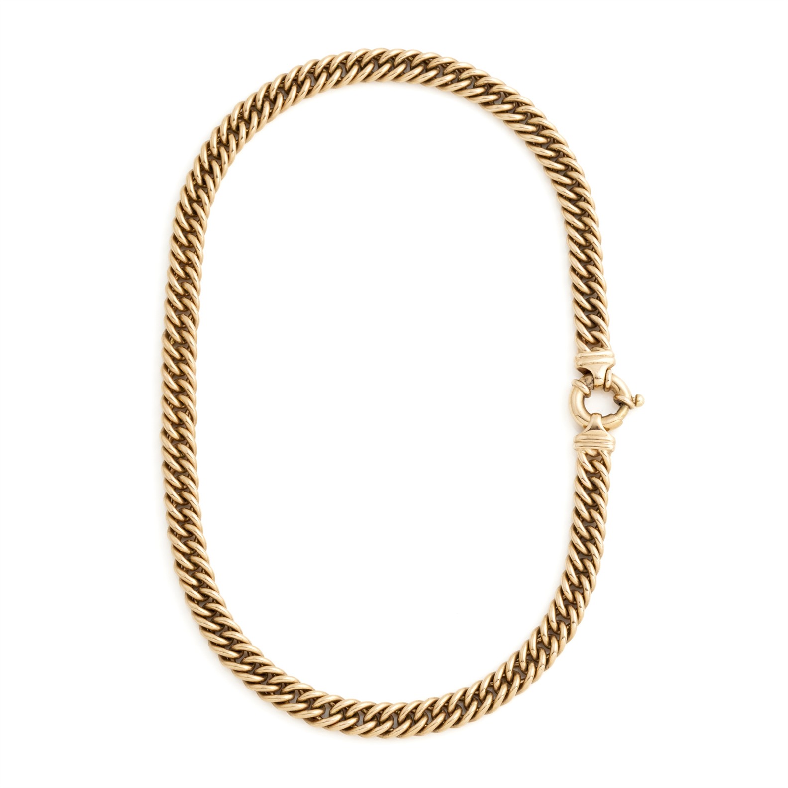 A CURBLINK CHAIN IN 9CT GOLD, TO A EURO BOLT RING CLASP, 455MM, 94.78GMS