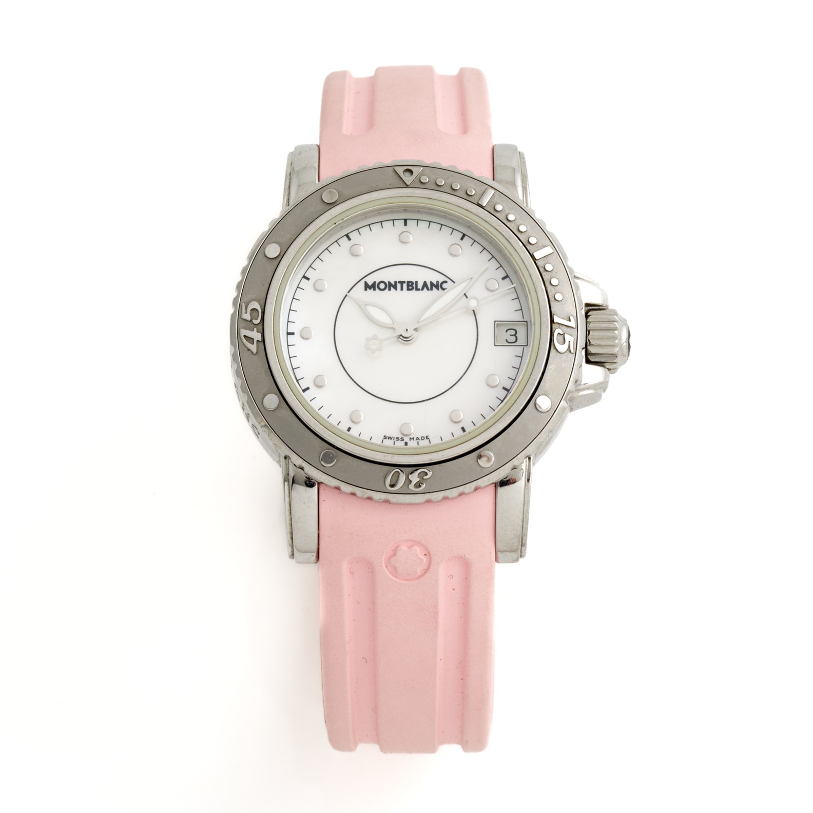 MONTBLANC, A LADYS STAINLESS STEEL AND DIAMOND-SET QUARTZ BRACELET WATCH, WITH BOX AND PAPERS, FACE MEASURING 32MM