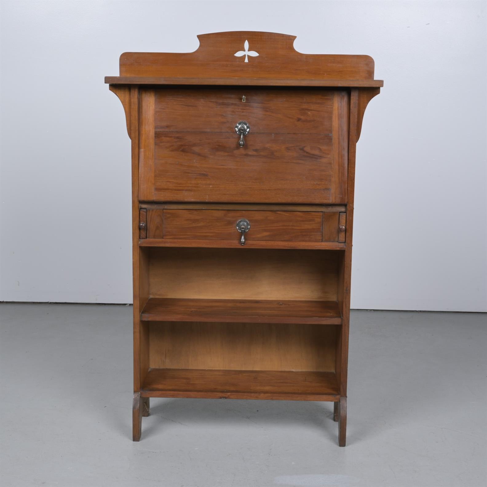A HARDWOOD CABINET IN ARTS AND CRAFTS MANNER (133H X 84W X 29D CM)(THIS ITEM MUST BE REMOVED BY THE CUSTOMER OR CARRIERS AT THE CUSTOMER'S EXPENSE. LEONARD JOEL STAFF CANNOT ASSIST CARRYING THIS ITEM)