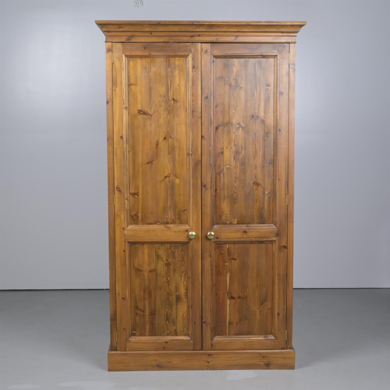 A LARGE PINE WARDROBE (226H X 135W X 66D CM)(THIS ITEM MUST BE REMOVED BY THE CUSTOMER OR CARRIERS AT THE CUSTOMER'S EXPENSE. LEONARD JOEL STAFF CANNOT ASSIST CARRYING THIS ITEM)