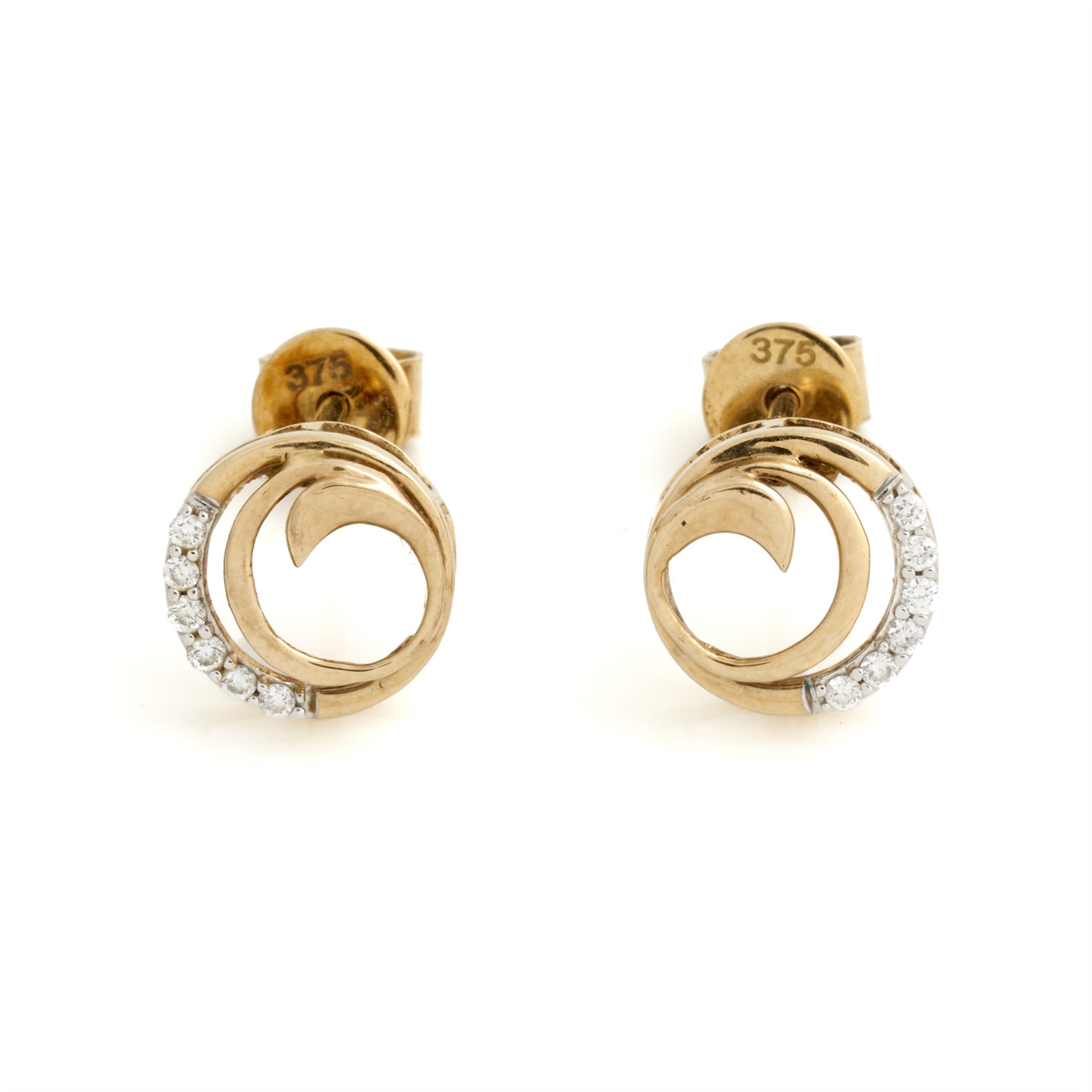A PAIR OF DIAMOND STUD EARRINGS IN 9CT GOLD, LENGTH 9MM, TOTAL WEIGHT 1.46GMS