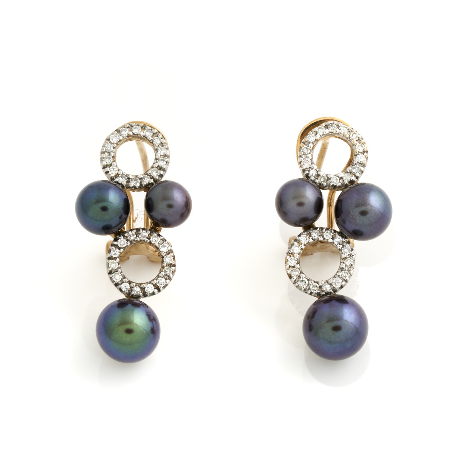A PAIR OF PEARL AND DIAMOND 'BUBBLE' EARRINGS IN 9CT GOLD, LENGTH 25MM, TOTAL WEIGHT 4.88GMS