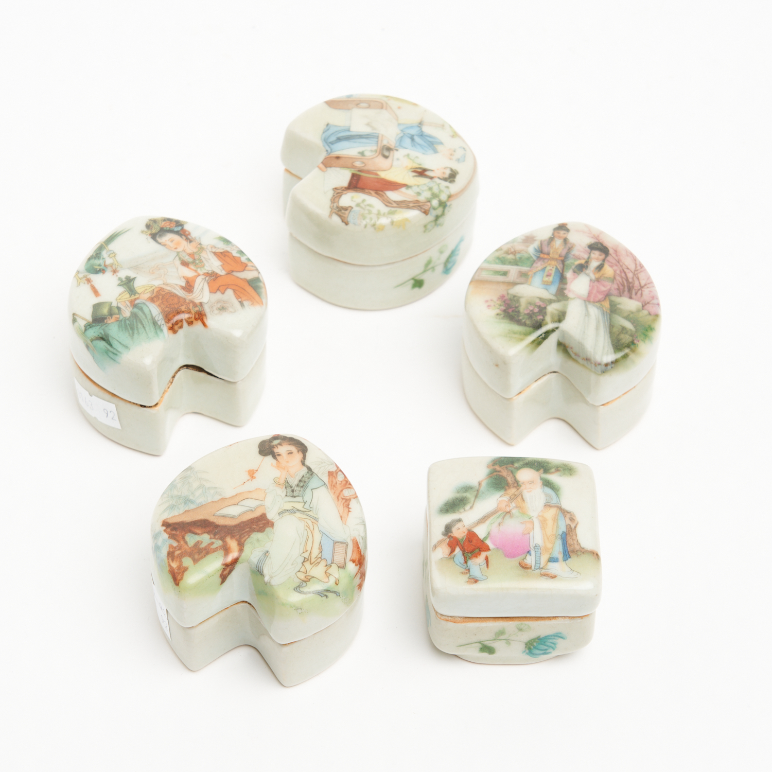 A GROUP OF FIVE 20TH CENTURY CHINESE PORCELAIN COVERED BOXES L.6.5CM (LARGEST)