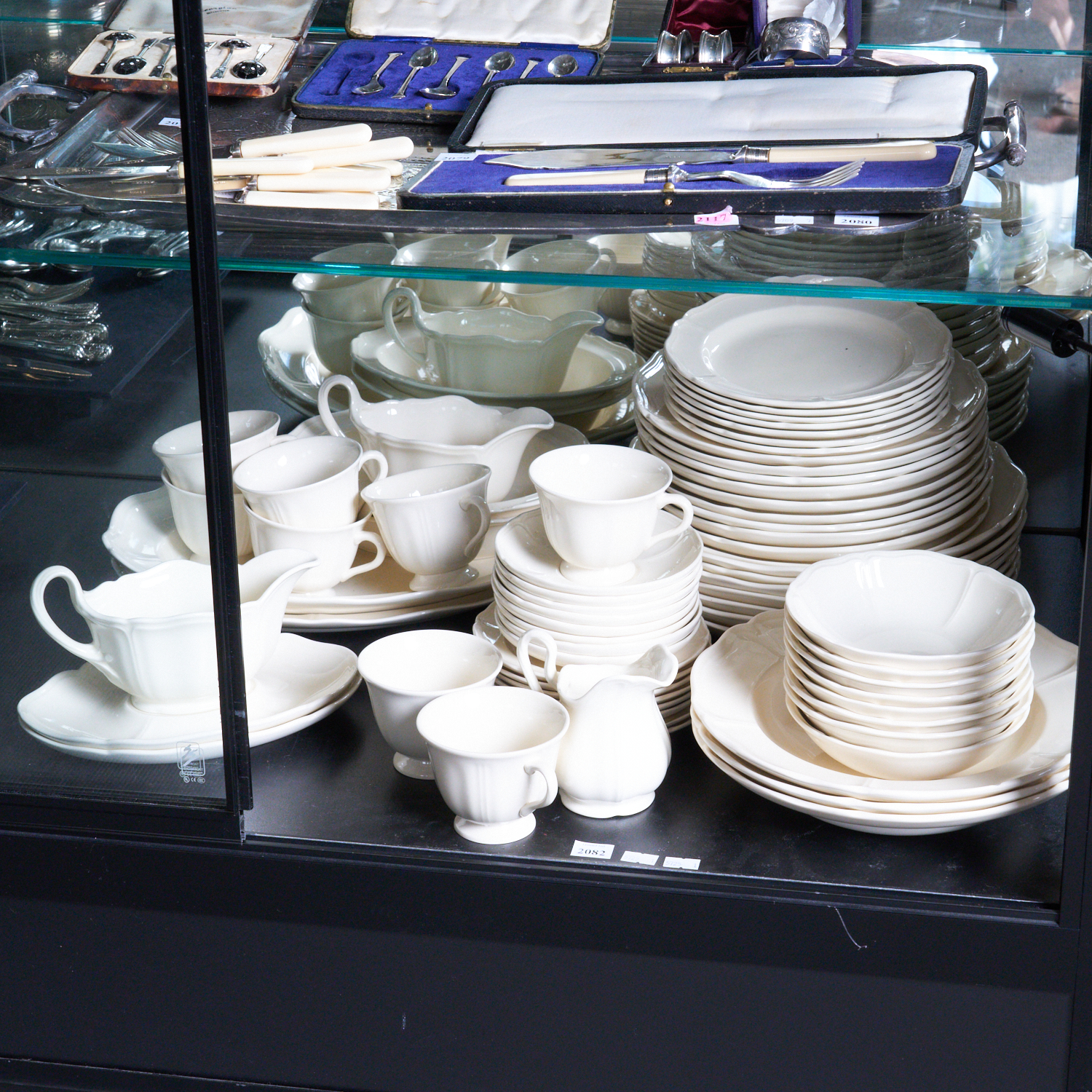 A LARGE AND COMPREHENSIVE WEDGWOOD QUEEN'S PLAIN PORCELAIN DINNER SET (A/F)