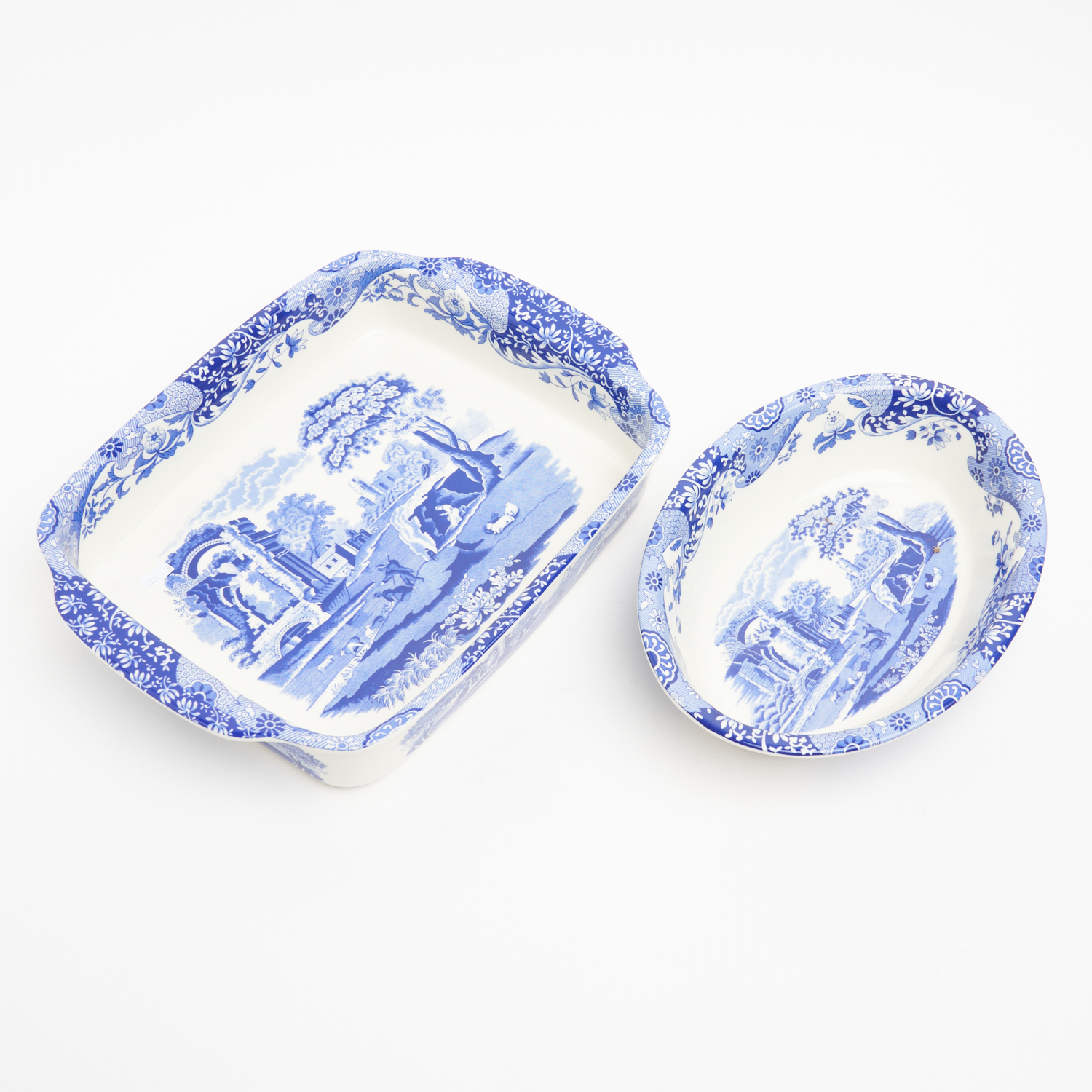 A PAIR OF SPODE BLUE ITALIAN SERVING DISHES, AS NEW WITH ORIGINAL BOXES W.41CM