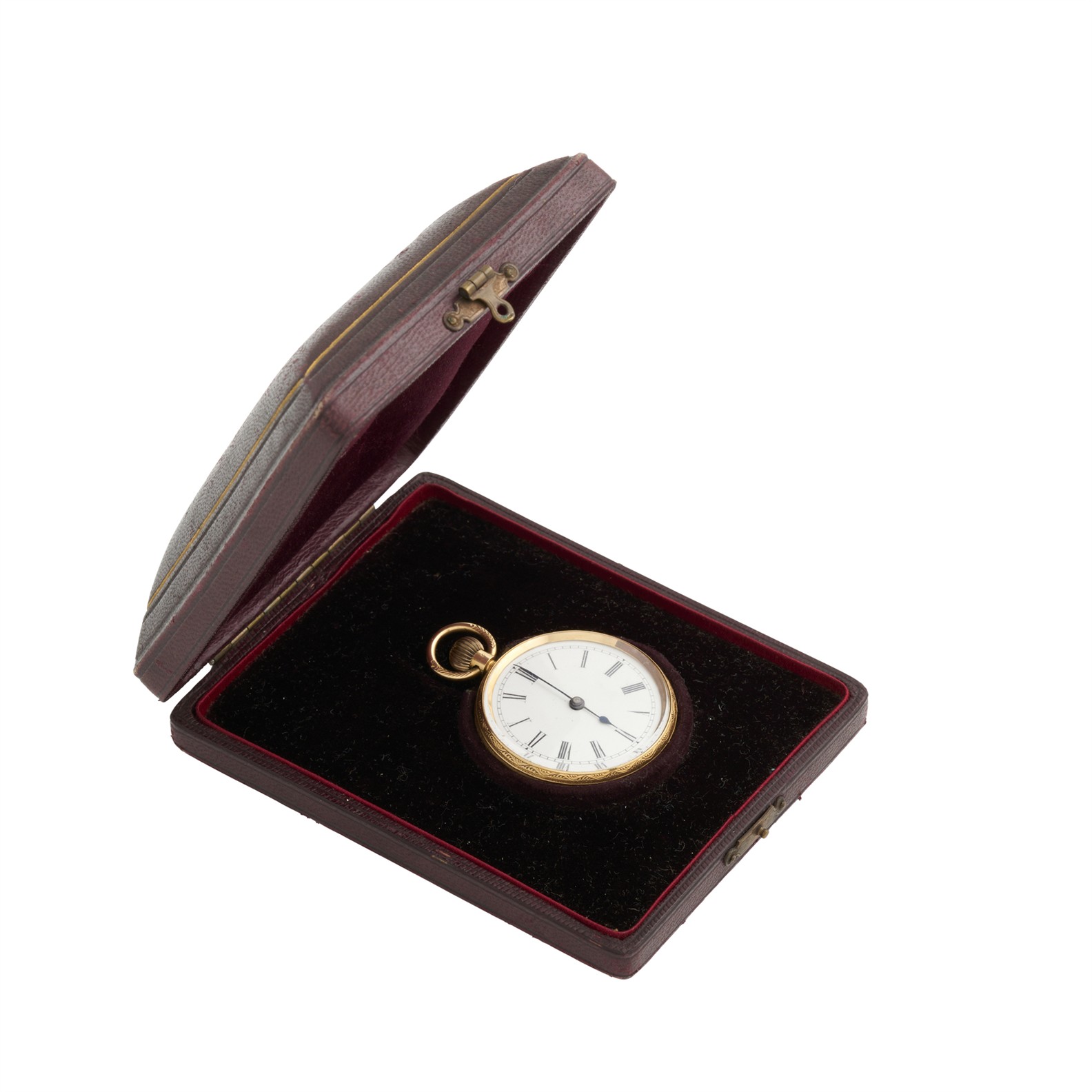 Dial: white enamel, Roman numerals, blued spade hands