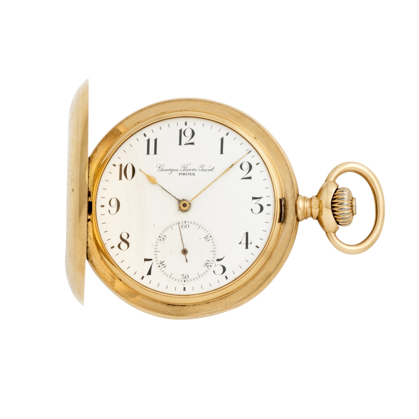 Dial: white enamel, Arabic numerals, sunken subsidiary dial, gilt spade hands