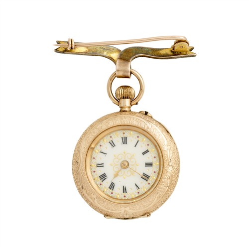 case: superficial surface scratches and marks, enamel loss to painted miniature and to bow brooch attachment, normal traces of light use throughout commensurate with age
