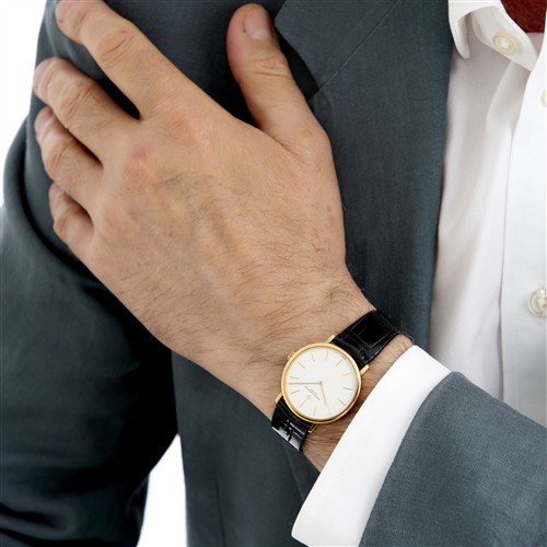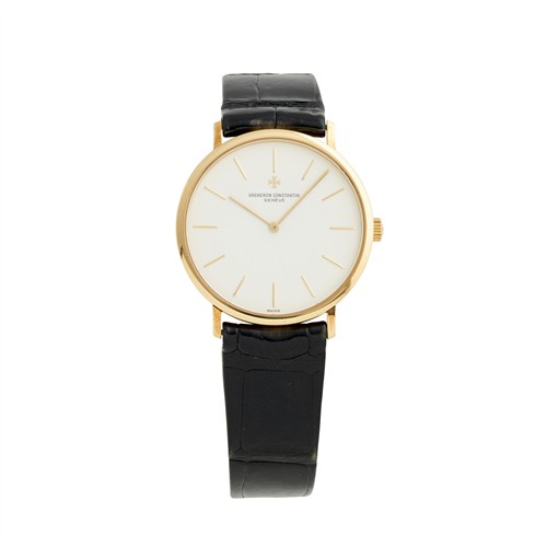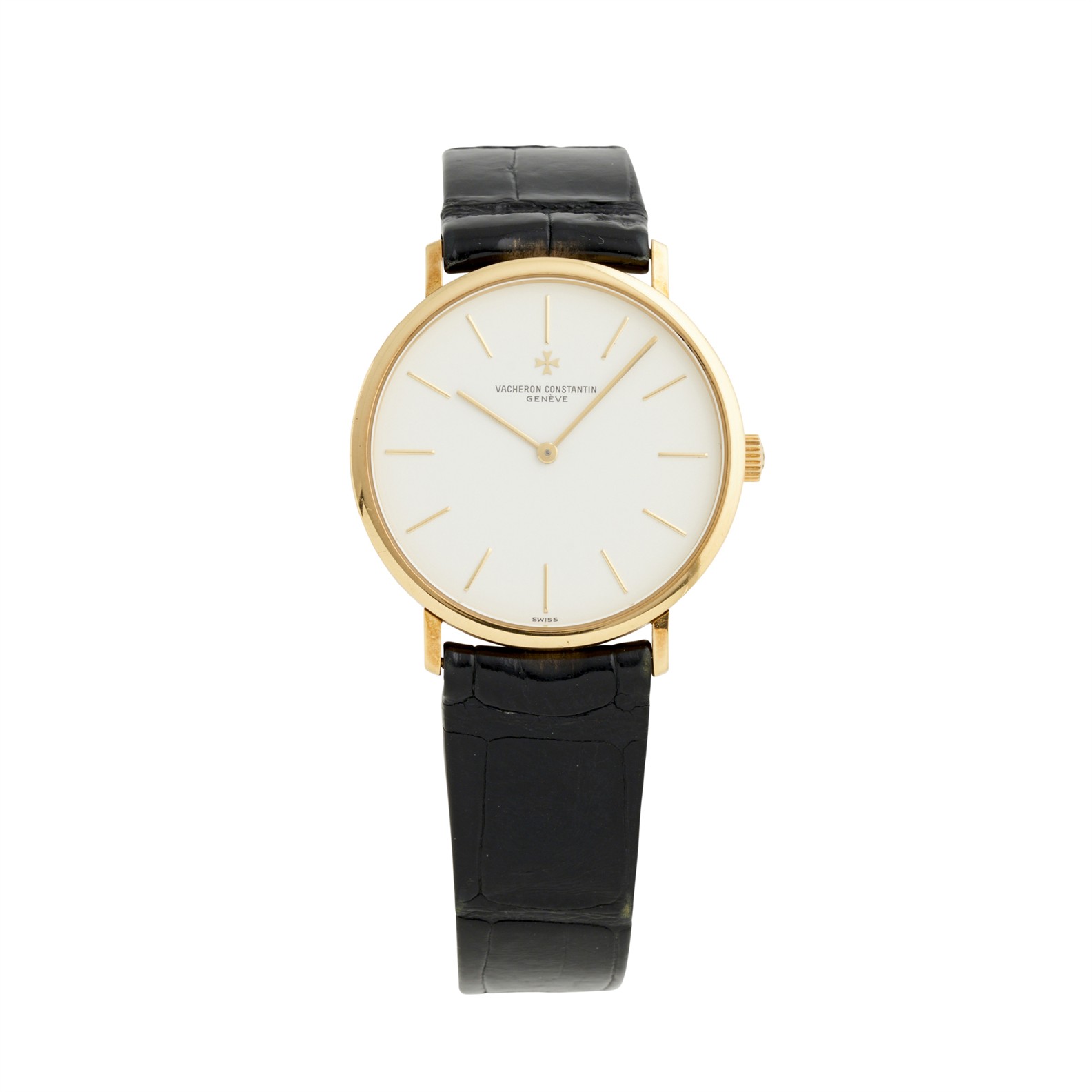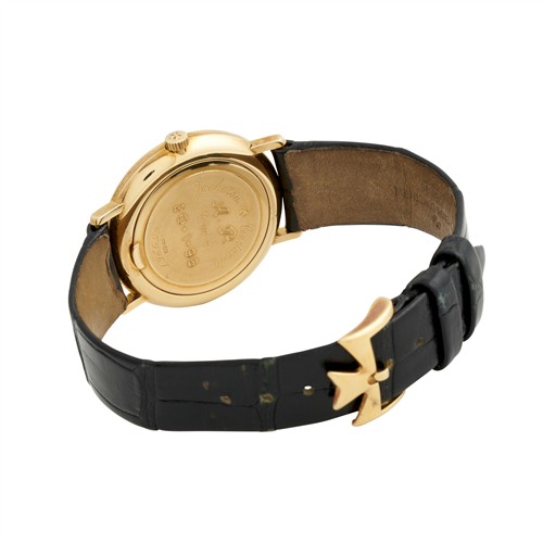 Closure: Vacheron Constantin black leather strap and maker's 18ct gold buckle