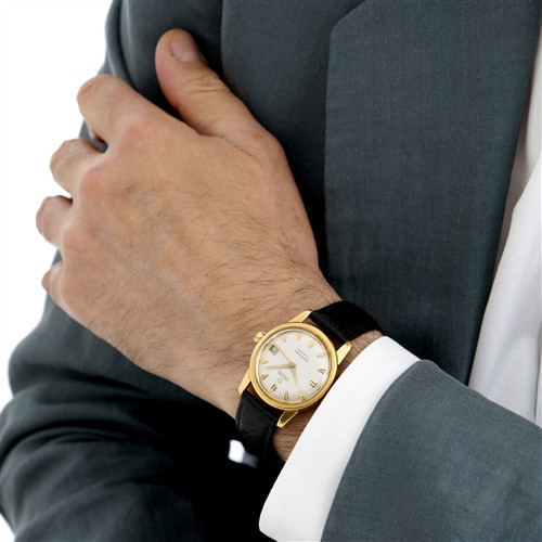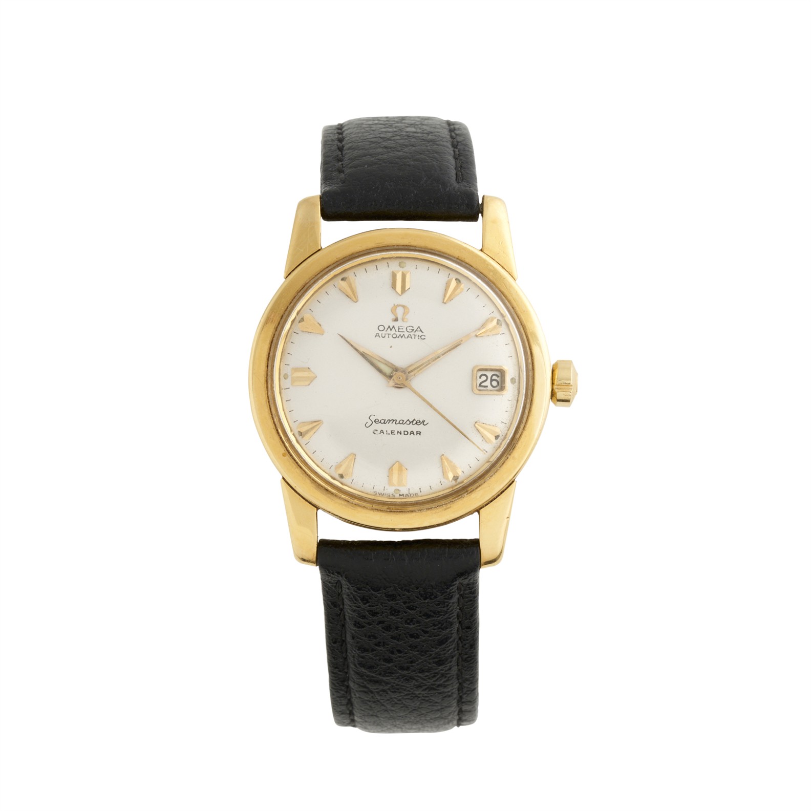 Closure: generic black leather strap with Omega plated buckle