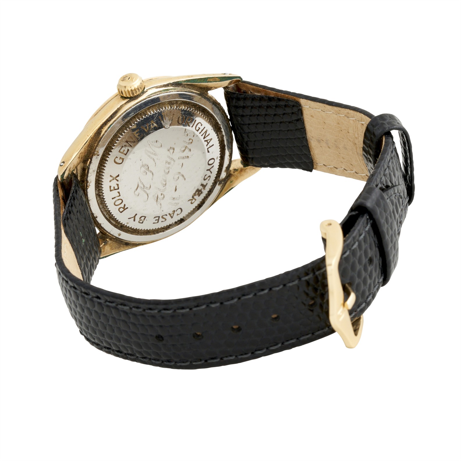 case: surface scratches and scuffs, tarnish marks and plating loss to back of case, engraved Original Oyster Case by Rolex Geneva overall with traces of use consistent with age, Rolex crown