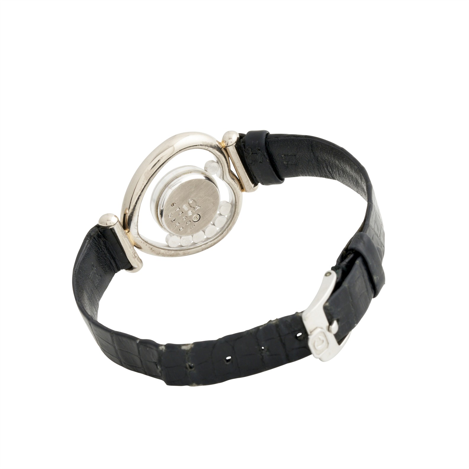 Case: brushed and polished heart-shaped, snap on case back, diamond set bezels with glazed intersection, seven free floating diamonds, no. 675681
