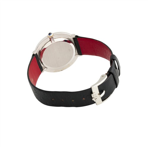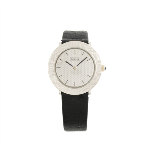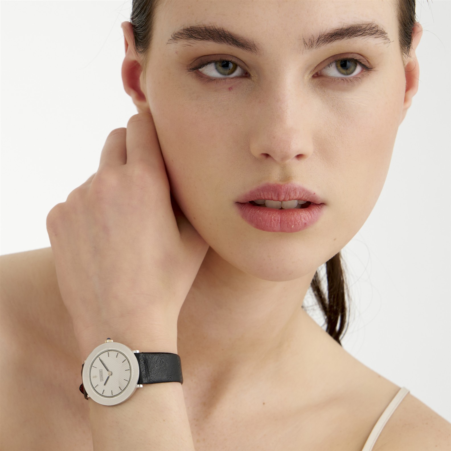 Dial: stippled, polished baton hour markers and black accented pointed baton hands