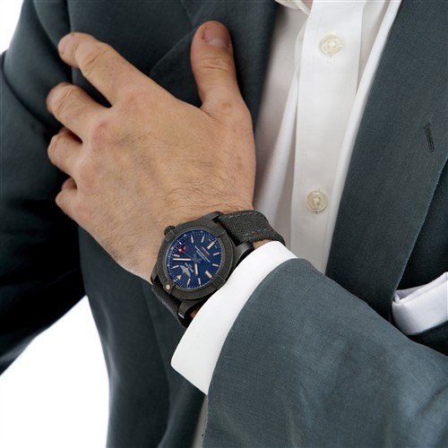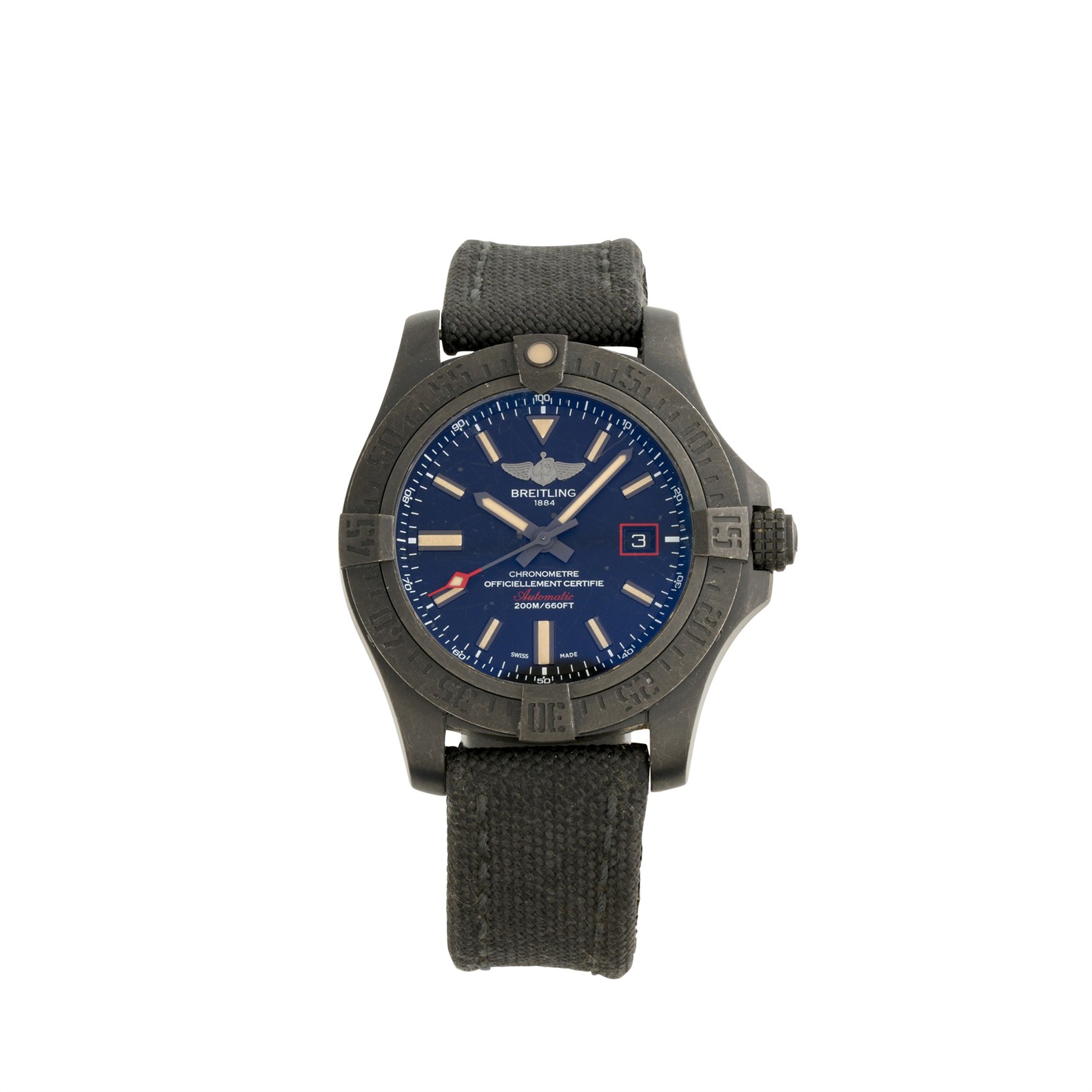 Closure: Breitling military canvas strap with DLC coated stainless steel tang buckle