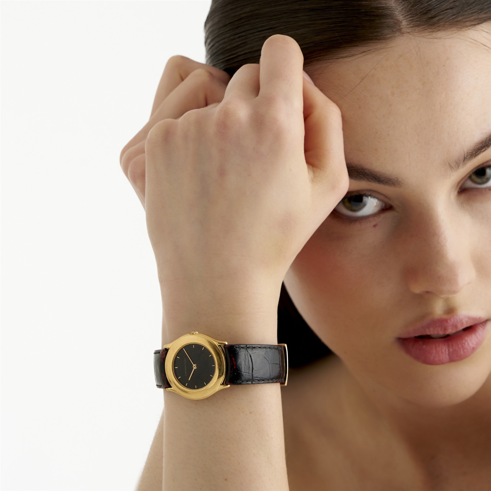 Closure: black leather strap